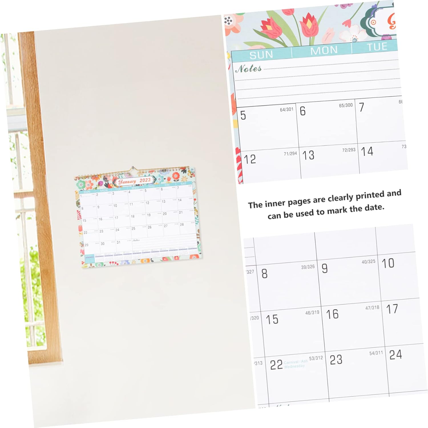 -Thick paper material, has concise inner pages, and it is very simple and practical hanging calendar.