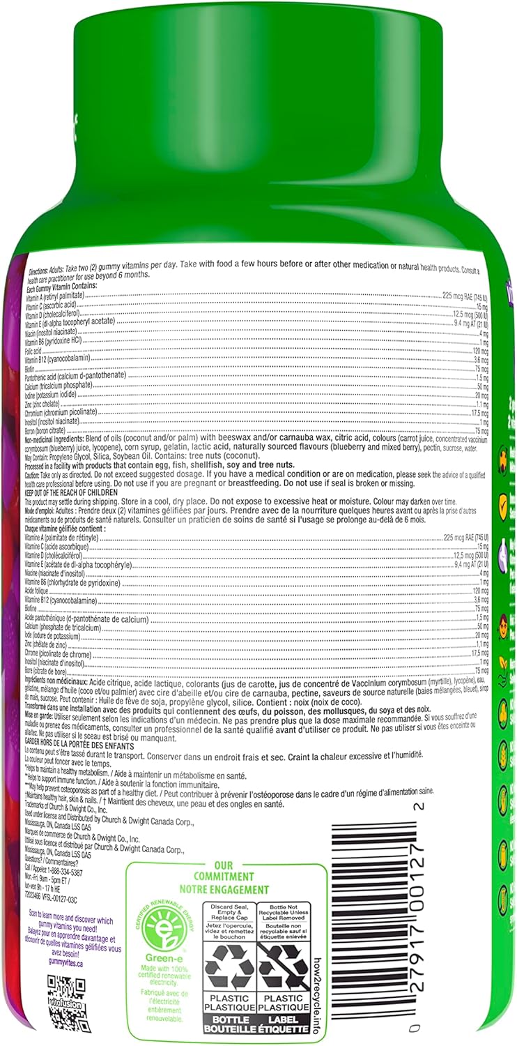 DELICIOUS GUMMIES FORMAT: Meeting nutrition needs is easy with these delicious gummy vitamins; They contain naturally sourced Berry Flavours.