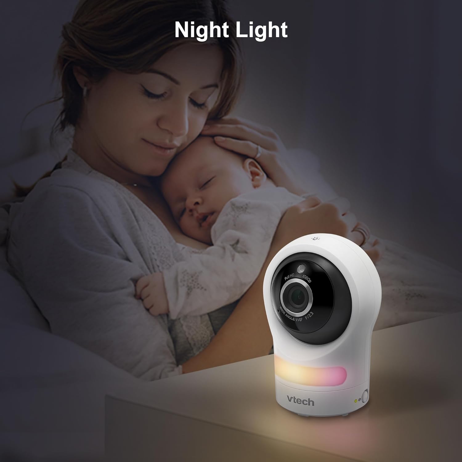 Touch adaptive night light – The 7 color night light automatically adjust brightness for ideal lighting. Touch the light icon to control the night light.