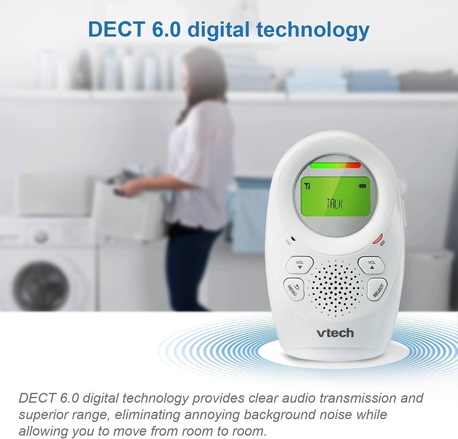 I suffered for years with the old DM223 model, which would beep all the time whenever it lost connection, which it would do randomly and for no reason, sometimes beeping in the middle of the night for minutes at a time. I could never figure out if it was caused by interference, or if it was just defective, because the baby unit was not very far away… maybe 40 feet at most, although admittedly through plaster walls.Finally decided to replace it and since it seems VTech is the only brand left selling audio-only baby monitors, I had to buy this one. I wish I did it sooner! This new model is amazing. No more beeping, so it either have better range or they are much more resistant to interference. Otherwise the features are almost identical to the old model, same battery, same menu options, but it just has a better range and a solid connection.My only gripe now is that indicator light is much brighter than the old model, and it flashes when it picks up the slightest sound regardless of what the “vox sensitivity” is set to. This means if you have the baby unit near a fan or something, it will constantly be flickering all night even if it’s not enough to trigger the speaker. I wish there was an option to set the sensitivity of the light, but it is useful to have the visual indicator.