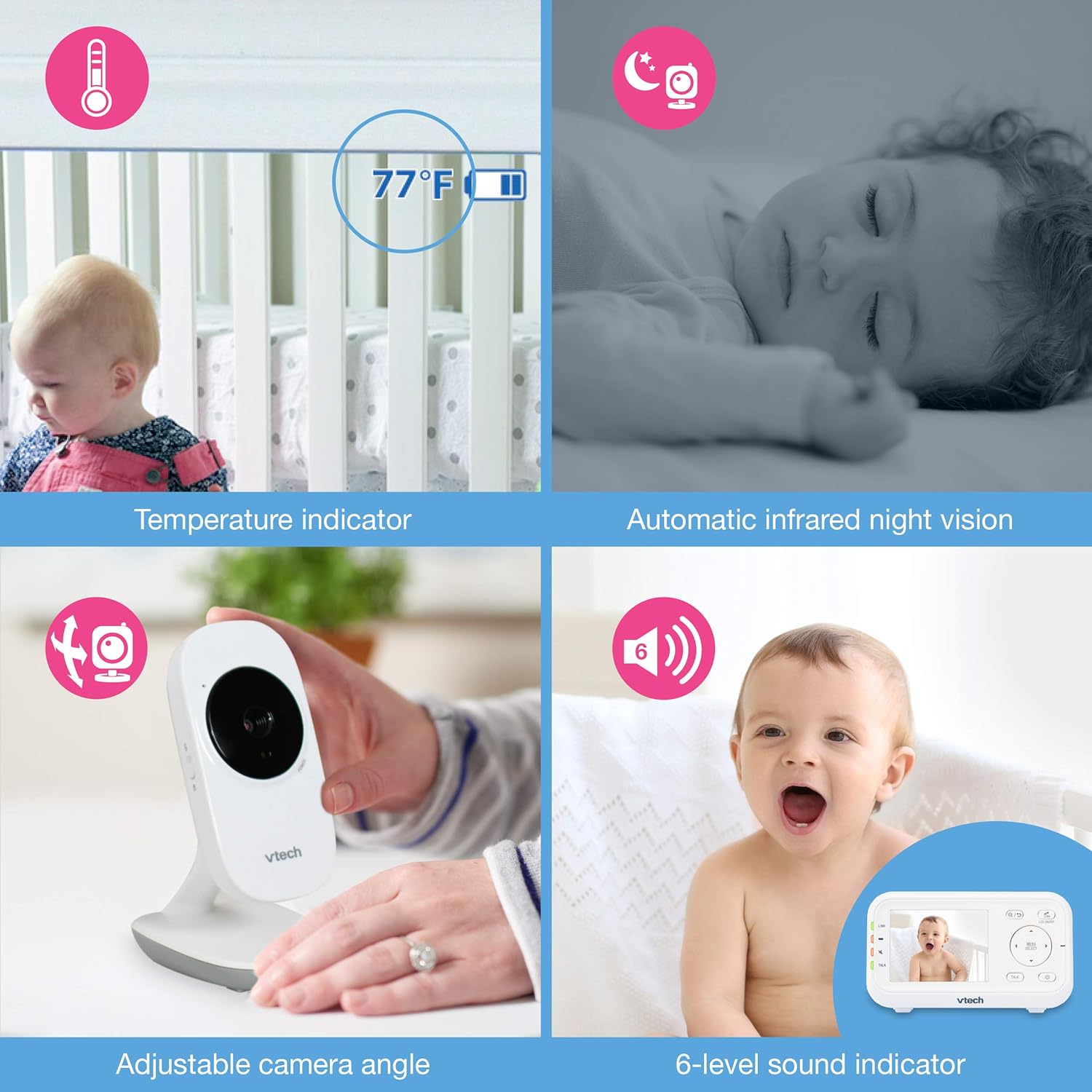 【2.8-INCH BABY MONITOR】- VTech baby monitor with camera and 2.8-inch color LCD screen with adjustable camera angle and 2x digital zoom. The baby monitor presents you with clear, colorful images of your baby. You won’t miss a moment with your little one.