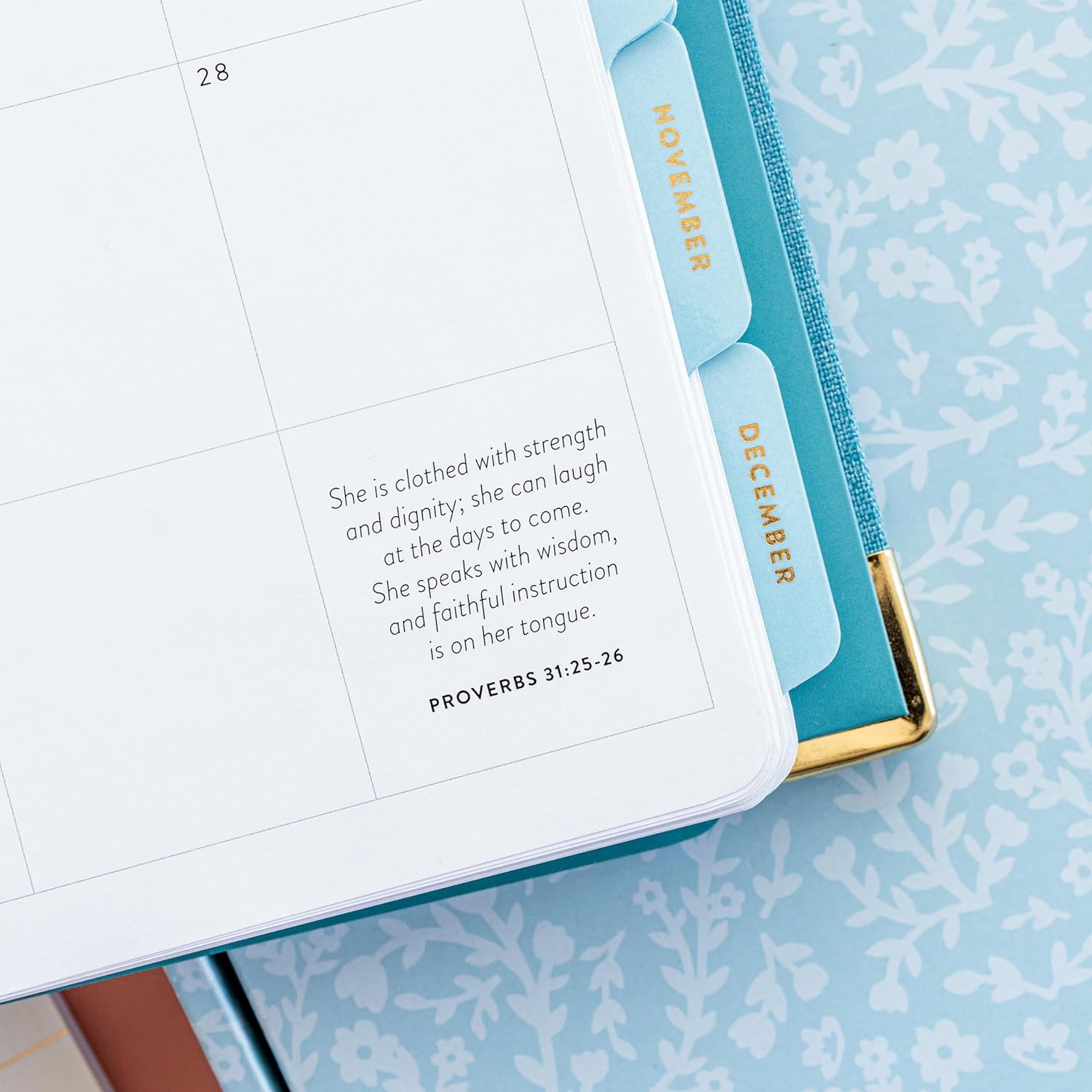 LUXURY MEETS FUNCTIONALITY – Enveloped in a sophisticated blue linen cover and adorned with blue foil-stamped sturdy mylar tabs, this planner blends elegance with functionality, making it a statement piece on your desk while enhancing your productivity.