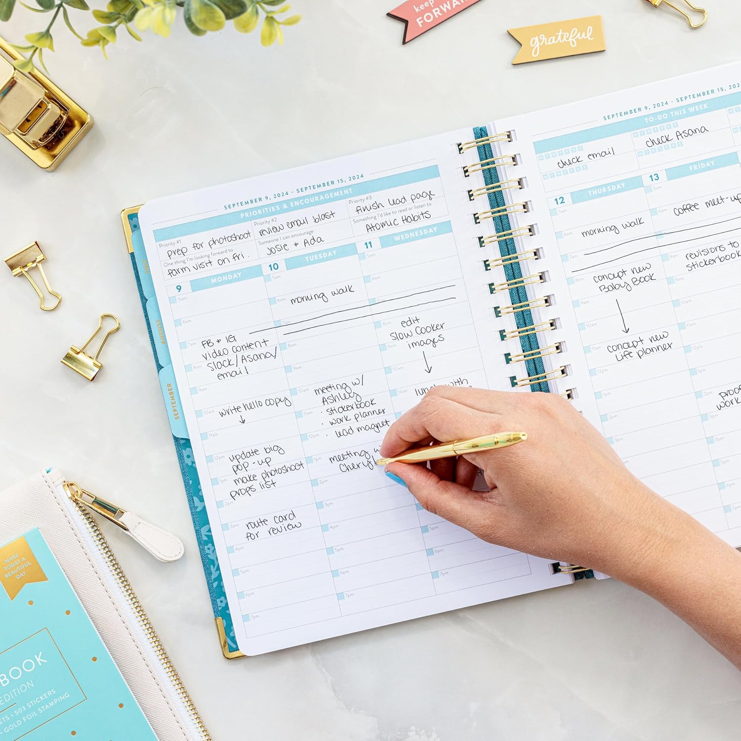 PLAN LIKE A BOSS – Crafted with premium materials, including 70 lb, pure white smooth paper and a thick blue linen cover, this 2025 planner sets a new standard for excellence in form and function, ensuring a delightful planning experience.