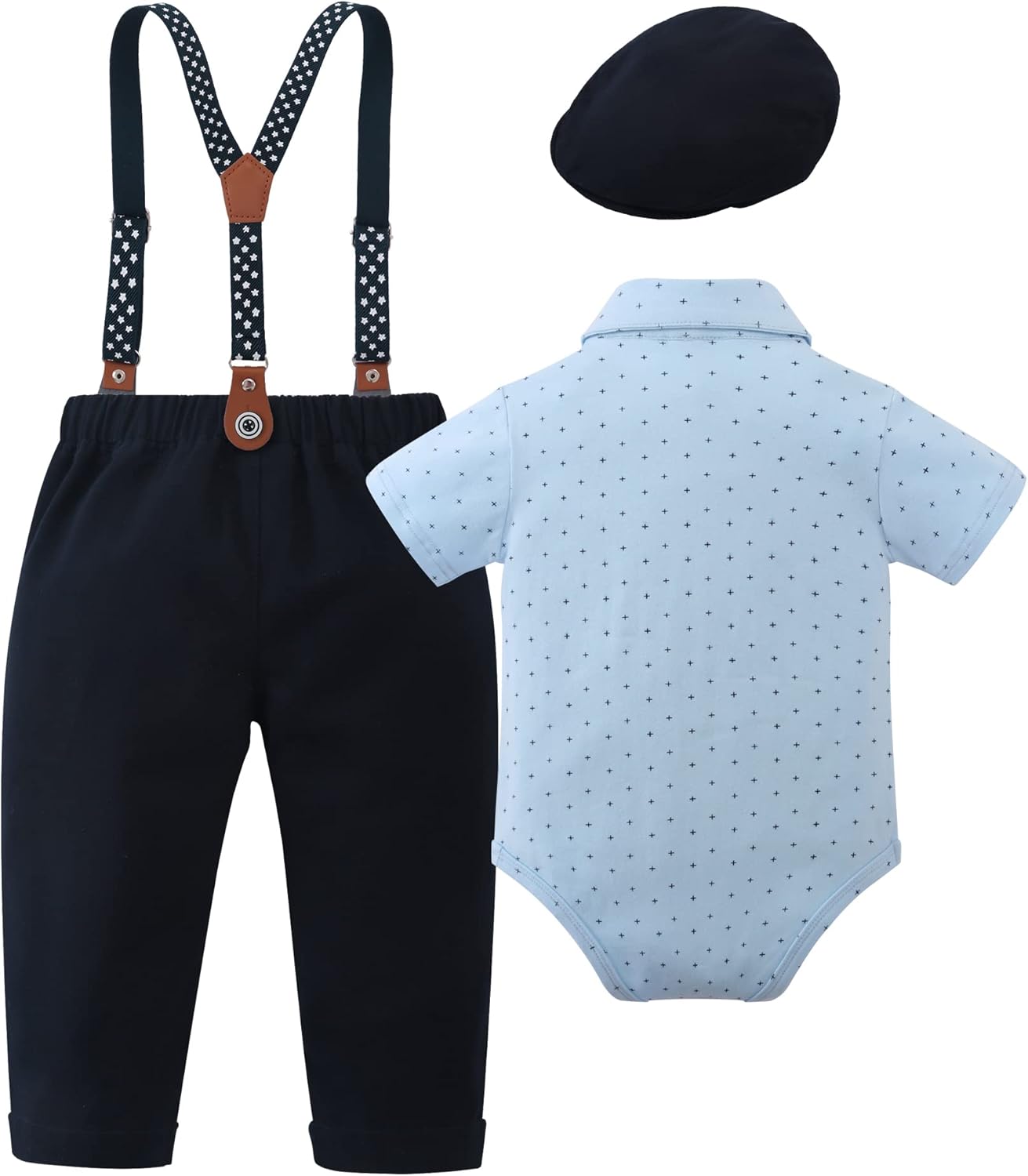 Dress Shirt with Bow-tie + Beret Hat + Matching Detachable Suspender Pants.