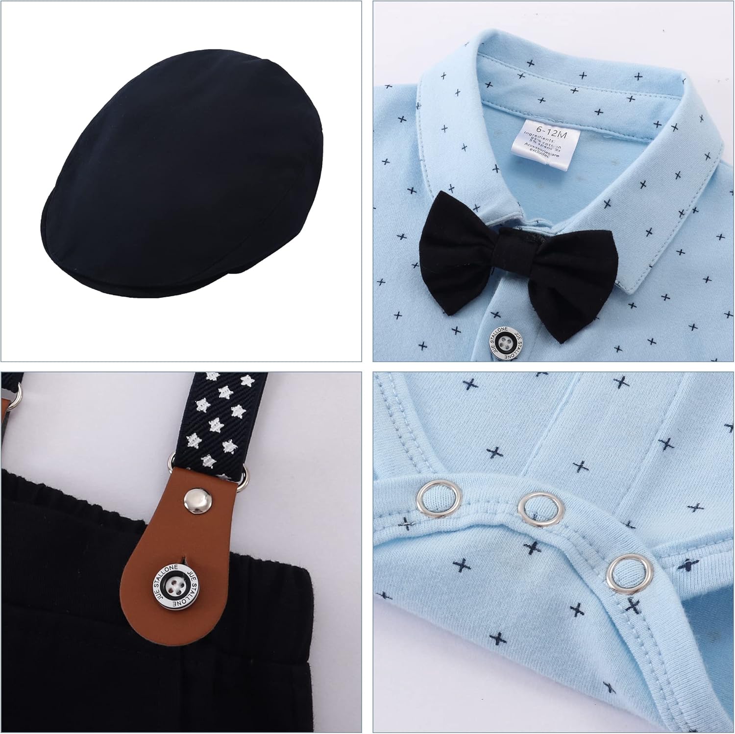 4 reviews for YALLET Baby Boy Clothes Suit Infant Gentleman Outfits Short Sleeve + Beret Hat + Suspender Pants + Bowtie Set 0-24M