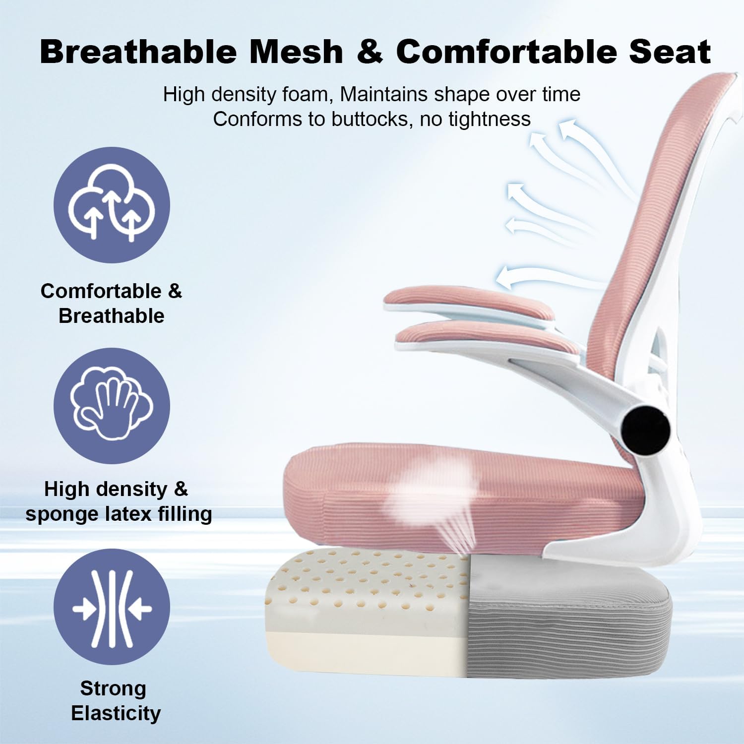 Yivke Office Chair Ergonomic Desk Chair, Mid Back Mesh Computer Chair with Lumbar Support, Adjustable Height, Flip-Up Arms, Swivel Executive Task Chair for Home Office, Study, Working (030-pink)