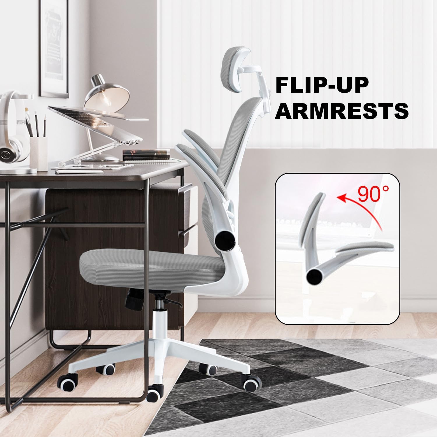 Adjustable features – Yivke ergonomic office computer chair has adjustable features such as 90°-135° tilt, and reclining, and headrest adjustment, 90° flip-up armrest allowing you to customize the home office desk chair to your preferences and needs,This mesh computer chair with flip-up armrest and seat height adjustable means you can find the perfect position