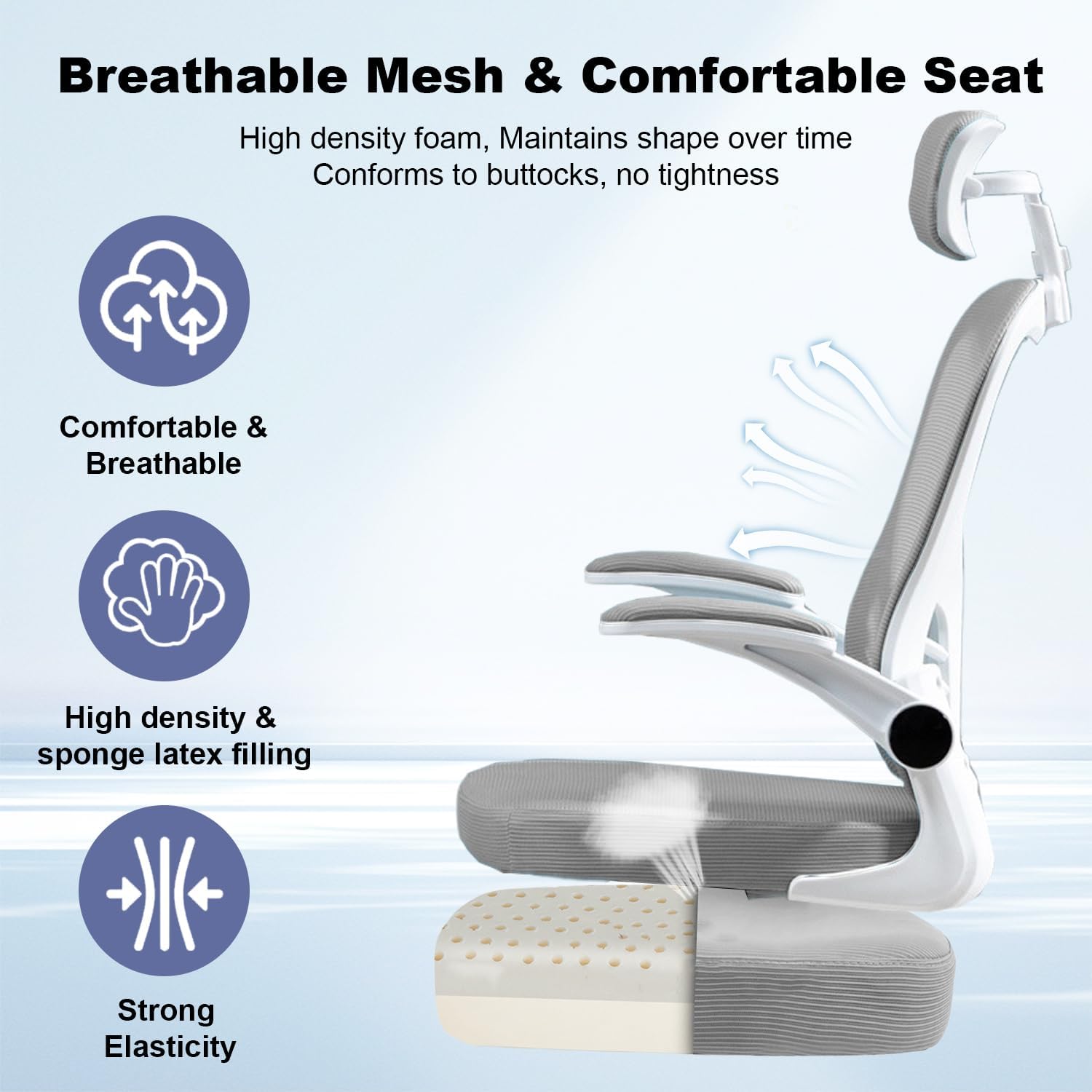 Density Molded Foam Cushion Ergonomic Office Chair- Soft sponge cushions can strain the lower back, while firm cushions can impede blood flow. Our molded foam seat cushion is engineered with the perfect density. It provides a delicate balance of support and comfort, ensuring durability and long-lasting comfort even during extended periods of sitting
