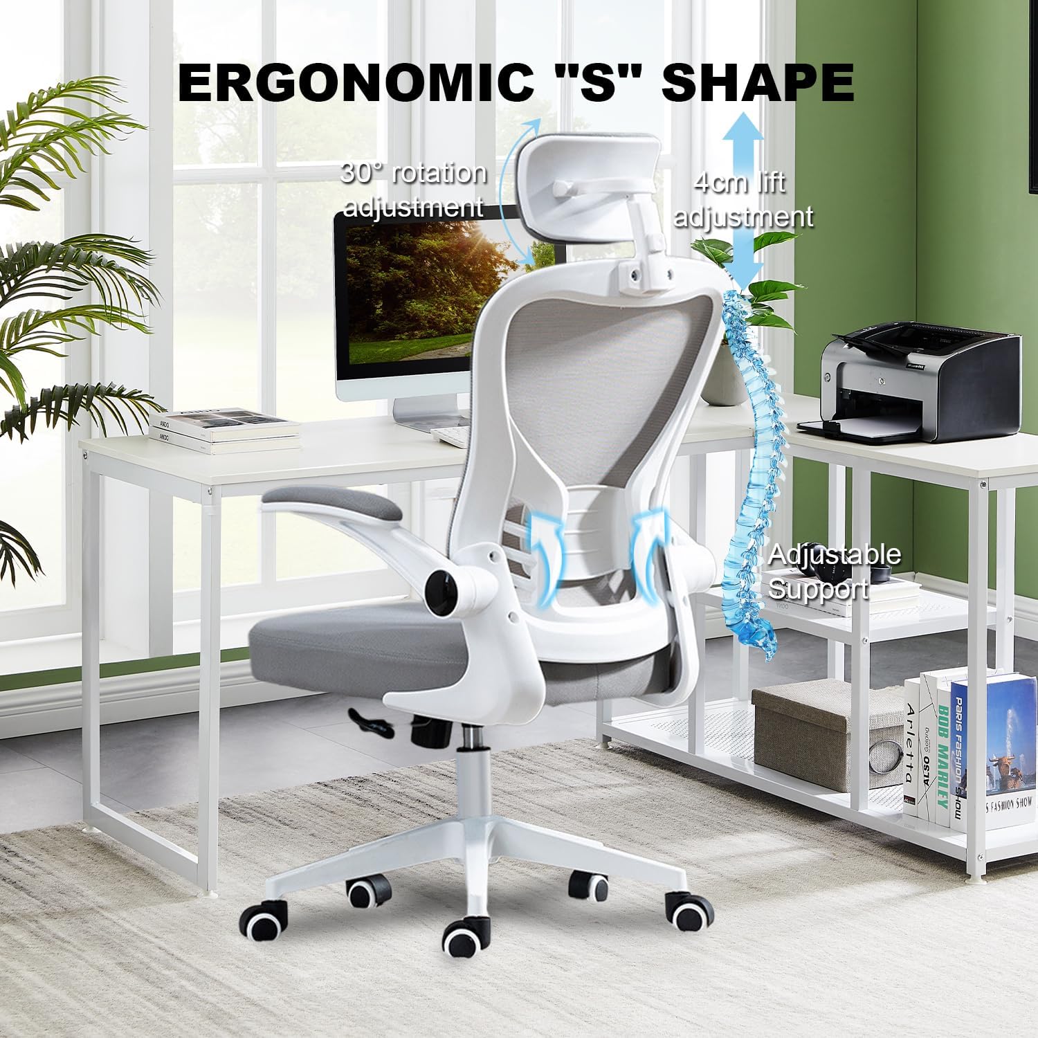 Premium Materials: The ergonomic office chair has a reliable height-adjustable gas lift and heavy-duty base, and smooth-rolling casters for great stability and won’t damage floors or carpets. It could run smoothly on tile, wooden floors, carpets and other flooring