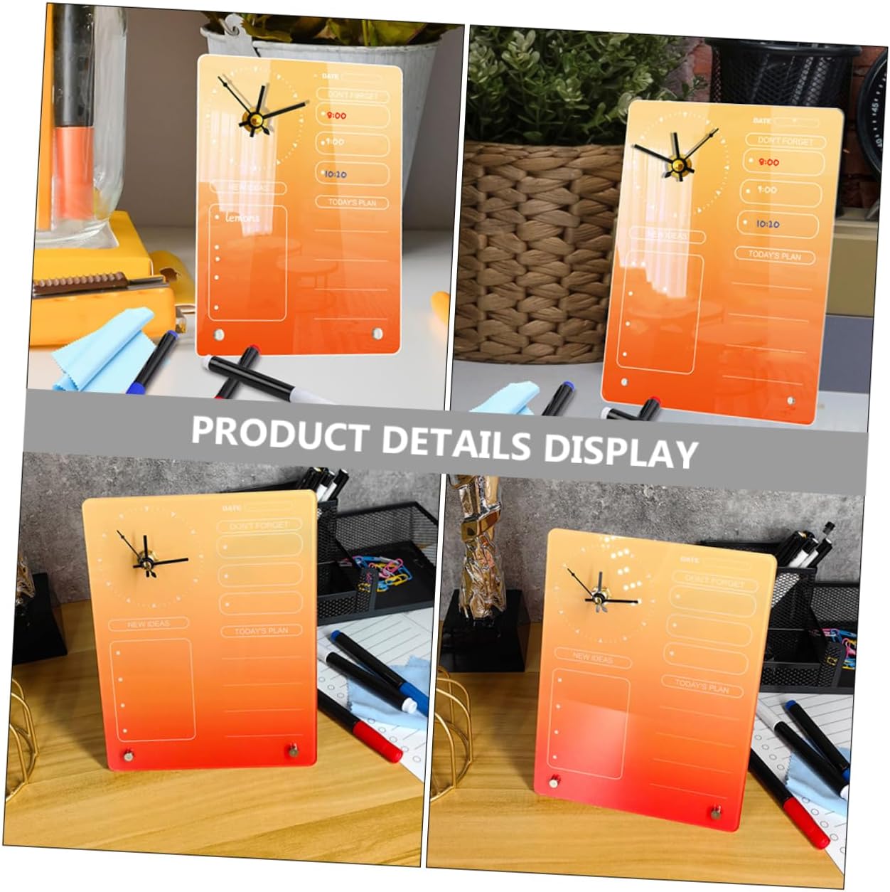 Acrylic note board:it also can functions as a clock, keeping you on track with time, while also providing a convenient space to jot down important notes and plans,dry erase board